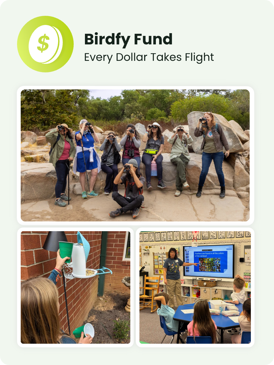 We proudly dedicate $1 from every Birdfy product sale to the Birdfy Fund. This initiative supports a range of conservation and charitable efforts—from enhancing public appreciation for birds to funding key avian protection initiatives.